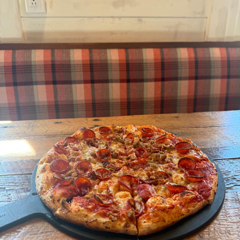 House red sauce, mini meatballs, sausage, pepperoni, bacon, and house cheese blend.